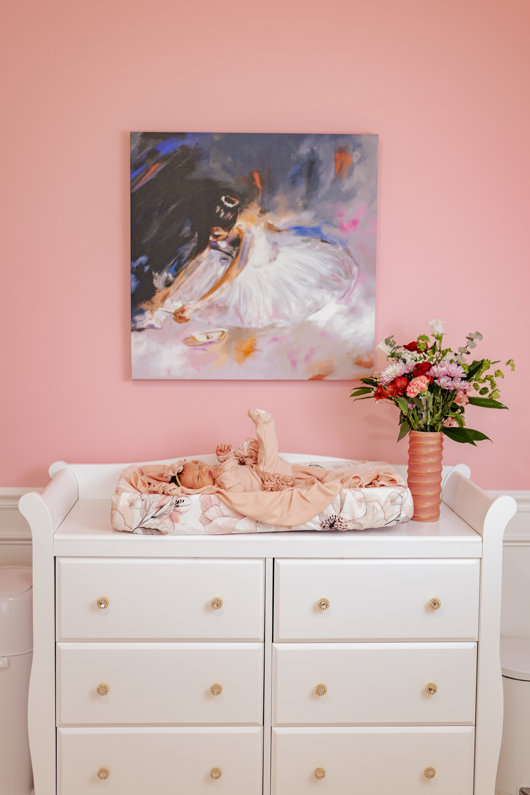 This little lady is all ready to lead her princess life! Her nursery is fit for a princess (or ballerina). Like a fairy tale. Each in home session is unique to your family- that’s the best part of a choosing an in home photography session, rather than a studio. A chance to highlight her first space, gifts and details of her little world. I love how magical this little lady’s newborn session turned out.