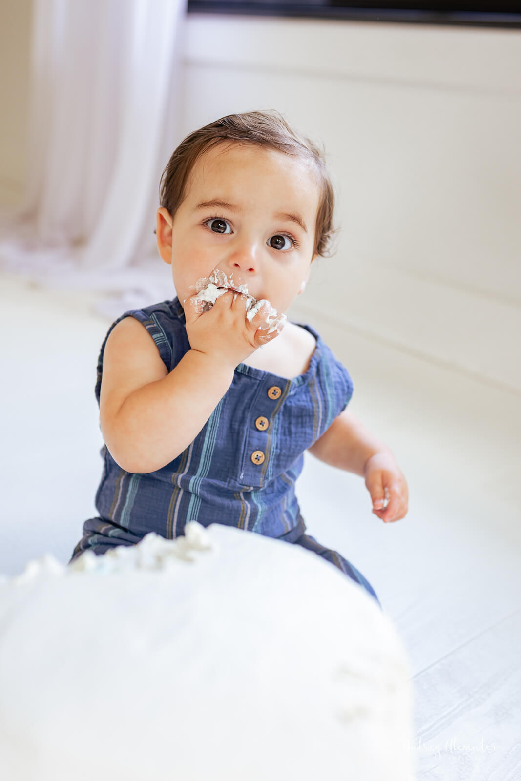 I love documenting a first birthday- with family portraits and a celebratory cake! And a studio session is perfect for this! A nice bight white backdrop. We got some great images of the whole family and some cute portraits of just the birthday boy and then let the mess begin. Looking to book a milestone session for your little one? Please reach out because I’d love to plan the perfect play date.