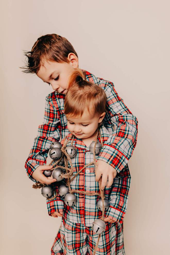 Sometimes you just need the kids. Nothing fancy. I love this little studio session. It made the perfect Christmas card when all that was in the forecast was rain! Beside the annual Holiday card, I love the festive framed image that will come out every year. Best Christmas decor ever, is family memories. With little ones this age… priceless.