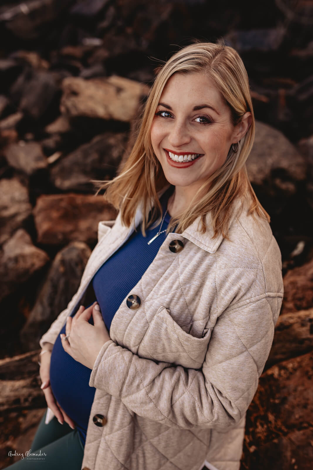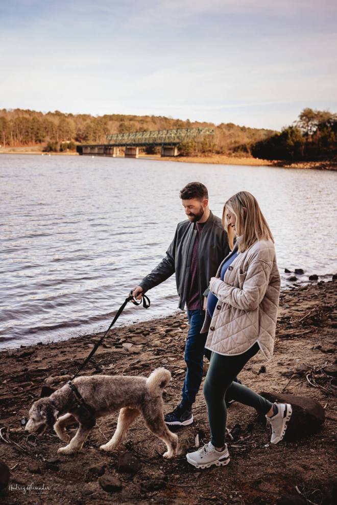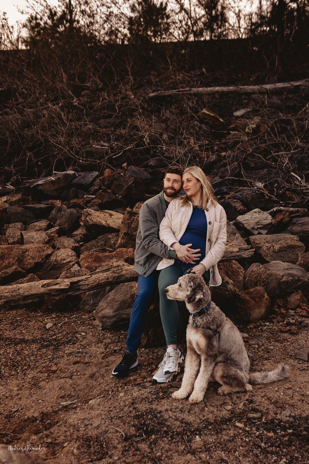 This client decide to be completely authentic to who they are as a couple. She choose a dressed up look and for her second look asked if they could take some portraits in their athleisure hiking gear. Uh, yes! While it’s not for everyone, I love how they turned out. It totally suited pregnancy because let’s be honest, this is how we dress often during pregnancy- comfortable! The key to these looking great is they dressed in similar color tones and it fit together well. Having both looks in their gallery gives them great variety.