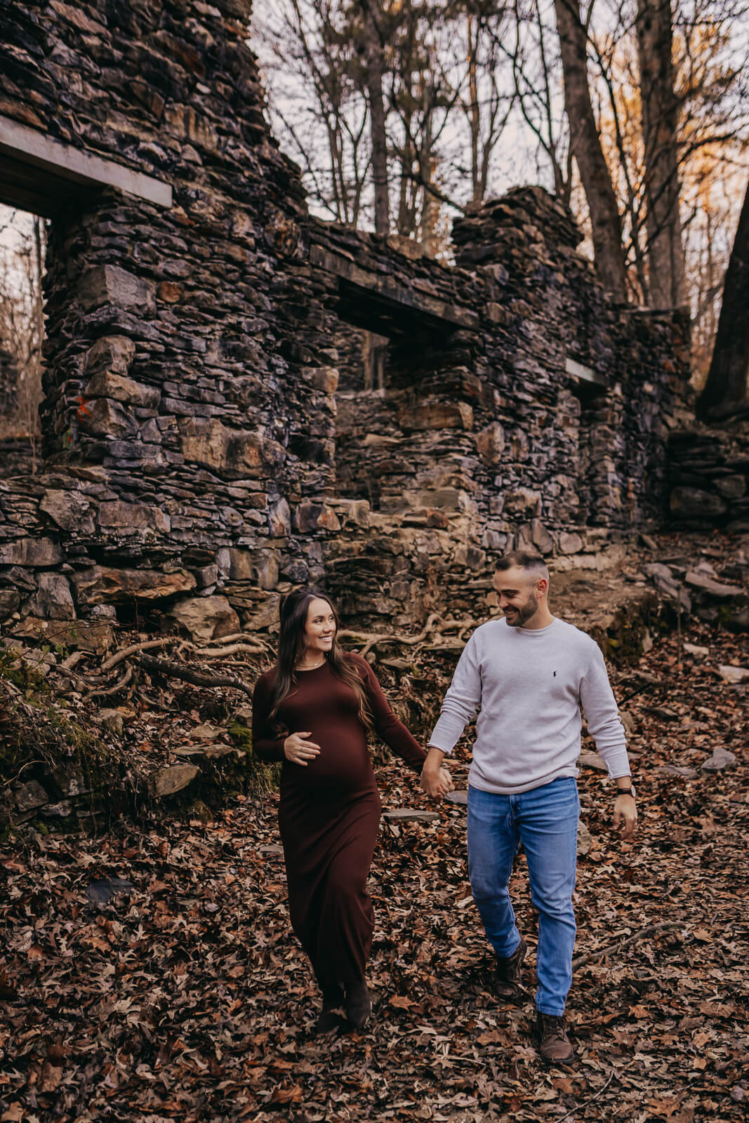 At this location the ruins are a fun easy walk when it’s cooler out. Plus, no bugs. My favorite part, there are so many beech trees here, you know the ones that keep those golden leaves all year round- Beautiful. This was my first session of the year, early January. However, it is just as lovely as any other session. Each season really carries it’s own beauty. Trust your experienced local photographer-me- that’s all! Booking in the winter also means, I have more flexibility… so we can wait for the perfect mild winter weather.