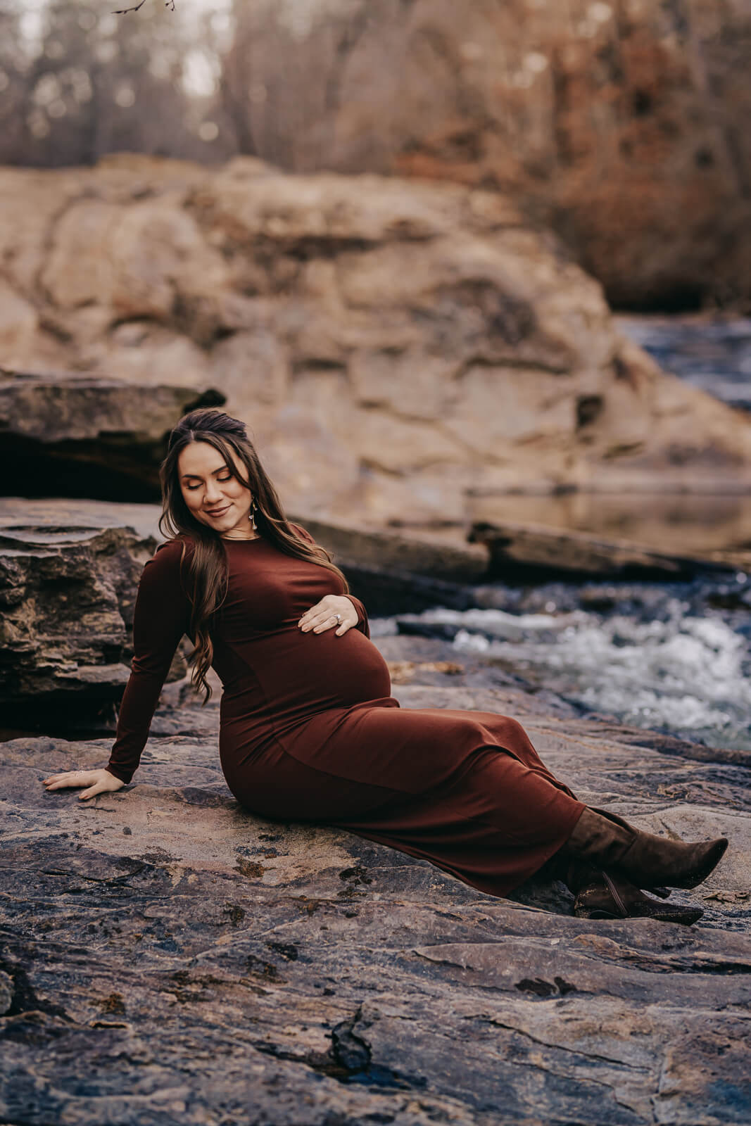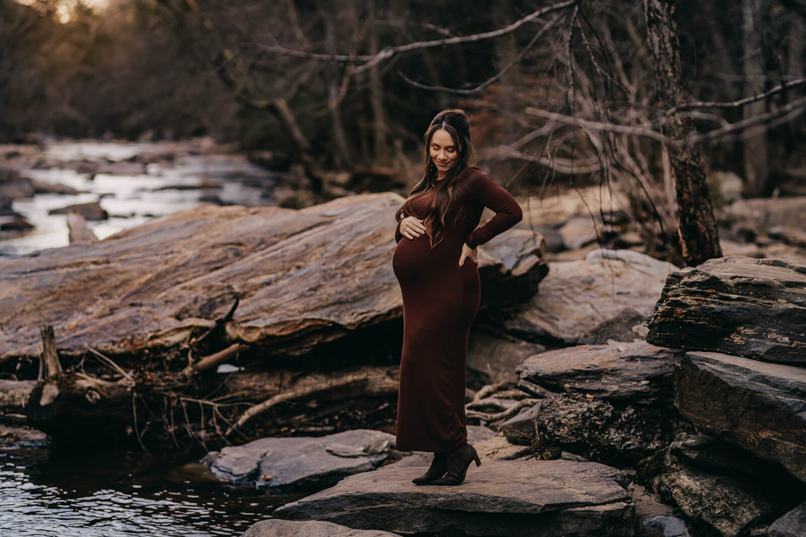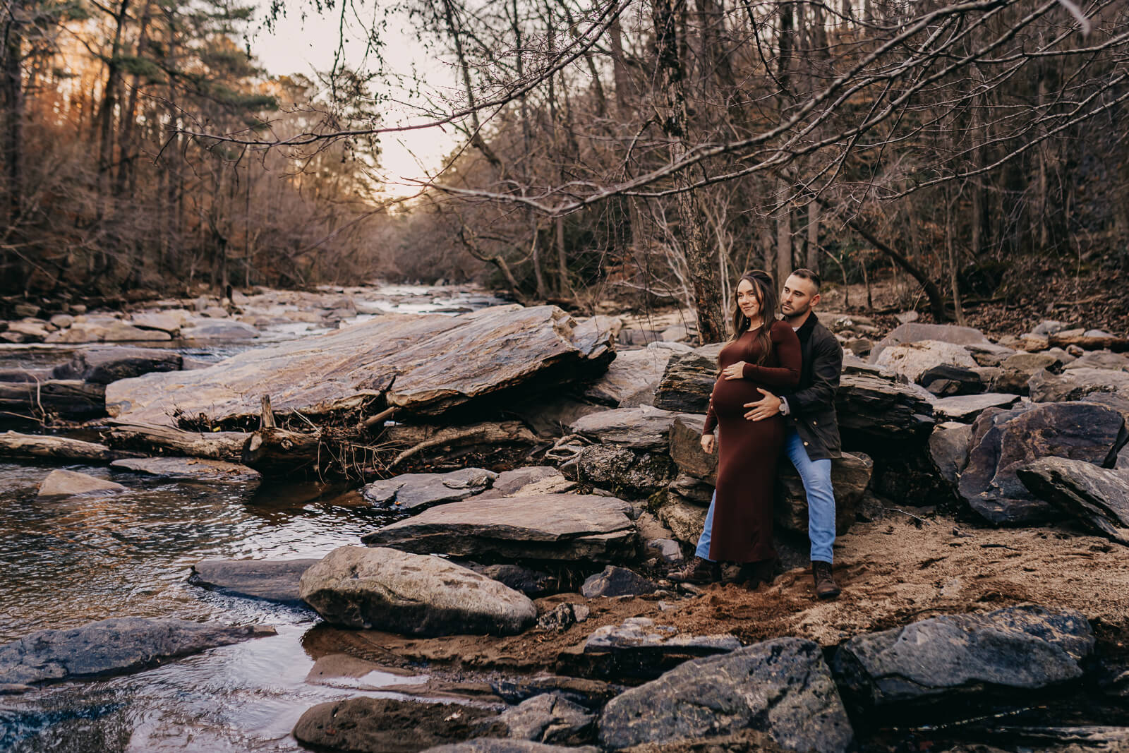 There are so many options for winter maternity sessions in the Atlanta area. We can meet up at the studio, your home or trust your photographer on where to go outdoors in the winter! Specially, I look for architecture, water, or outdoor settings with texture, evergreens or beech trees. This location we hit all of this!