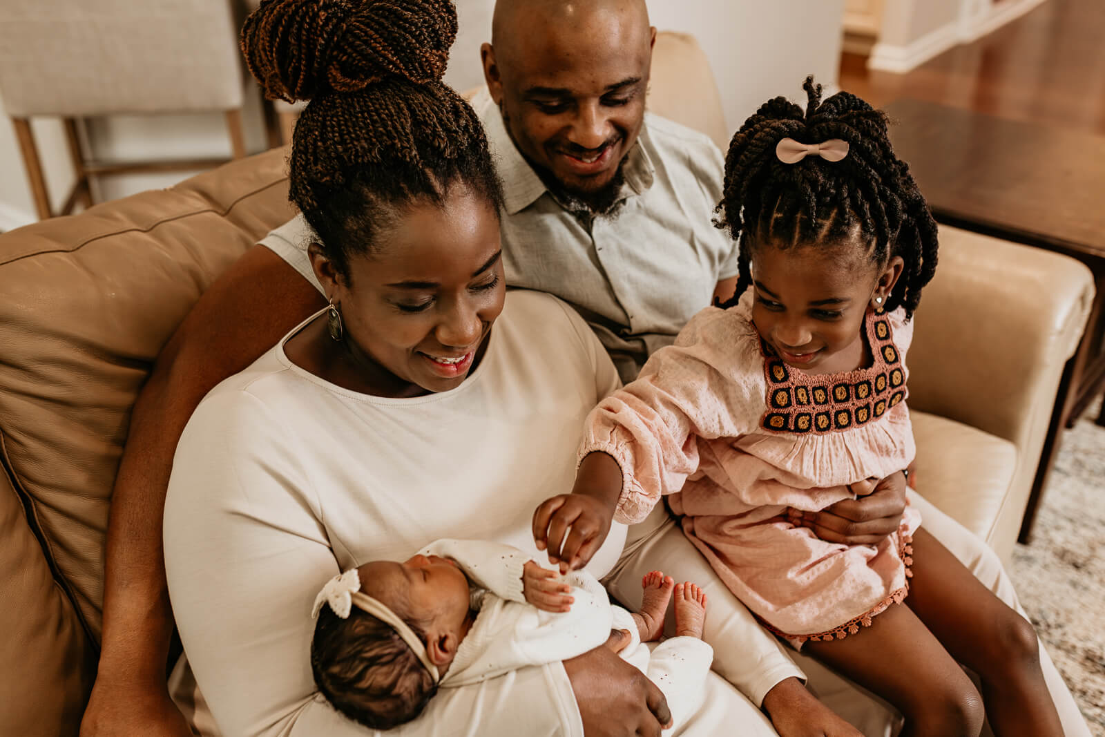 Your home becomes part of the story. You have a nursery you carefully prepared. There’s the couch where you’ve spent long hours holding your baby. Soft light fills your space in those early days. These details may feel ordinary now, but they often become the most treasured parts of your images later on.